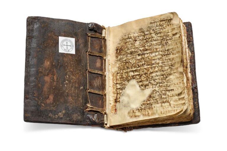 აუქციონზე წარმოდგენილი იყო ქართული ხელნაწერი სინას მთის კოლექციიდან (V-VII საუკუნეები) არამეულ და ქართულ ენებზე. ტექსტის ნაწილი ბერი იოანე ზოსიმეს მიერაა გადაწერილი და მისი ფასი 1, 000 000 – 1, 500 000 გირვანქა სტერლინგი იყო. ის ქრისტიანული პალესტინის არამეულ ენაზე შექმნილი ერთ-ერთი ყველაზე მნიშვნელოვანი ფრაგმენტია. დასავლურ არამეულ დიალექტს მელქის ქრისტიანული საზოგადოება პალესტინასა და ტრანსიორდანიაში მე-5 -მე-13 საუკუნეებში იყენებდა. ის შემონახულია მხოლოდ რამდენიმე წარწერაში, პალიმფსესტსა (ხელნაწერი, რომლის ფურცლები გადარეცხვის შემდეგ ხელახლა არის გამოყენებული საწერ მასალად) და ხელნაწერში. ხელნაწერი შეიცავს სახარებების ყველაზე ადრეულ ტექსტებს არამეულის უახლოეს დიალექტზე – იესოს დიალექტზე.