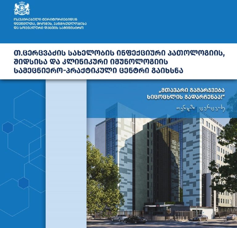 თენგიზ ცერცვაძის სახელობის ინფექციური პათოლოგიის, შიდსისა და კლინიკური იმუნოლოგიის სამეცნიერო-პრაქტიკული ცენტრი საზეიმოდ გაიხსნა. სამედიცინო ცენტრი დიღომში, ლუბლიანას ქუჩა N70 -ში განთავსდა.