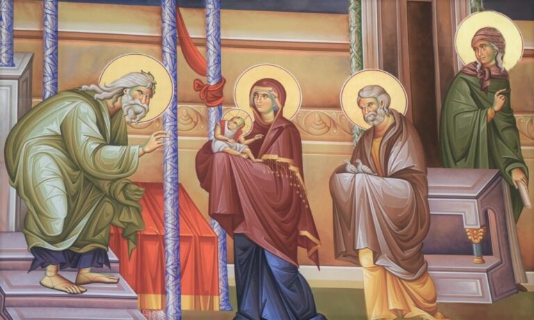 შობიდან მეორმოცე დღეს ყრმა იესო იერუსალიმის ტაძარში მიიყვანეს. მოსეს სჯულის მიხედვით, როცა დედაკაცი მამრობითი სქესის ყრმას შობდა, ორმოცი დღის შემდეგ ჰქონდა ტაძარში შესვლის უფლება. ოჯახი ასეთ შემთხვევაში ვალდებული იყო, შესაწირავი მიერთმია ღვთისთვის. ღარიბი ოჯახისთვის დადგენილი იყო ორი გვრიტი ან მტრედის ორი ხუნდი. ღვთისმშობელმა მარიამმა და მართალმა იოსებმა უფალს სამადლობელი და განსაწმენდელი მსხვერპლი შესწირეს – ორი ხუნდი მტრედისა. თუმცა ყოვლადწმინდა ქალწულს – დედას ღვთისას არ სჭირდებოდა განწმენდა, რადგან ქორწინების გამოუცდელად შვა წყარო სიწმინდისა, მაგრამ თავისი ღრმა სიმდაბლით რჯულის განწესებას მაინც დაემორჩილა.